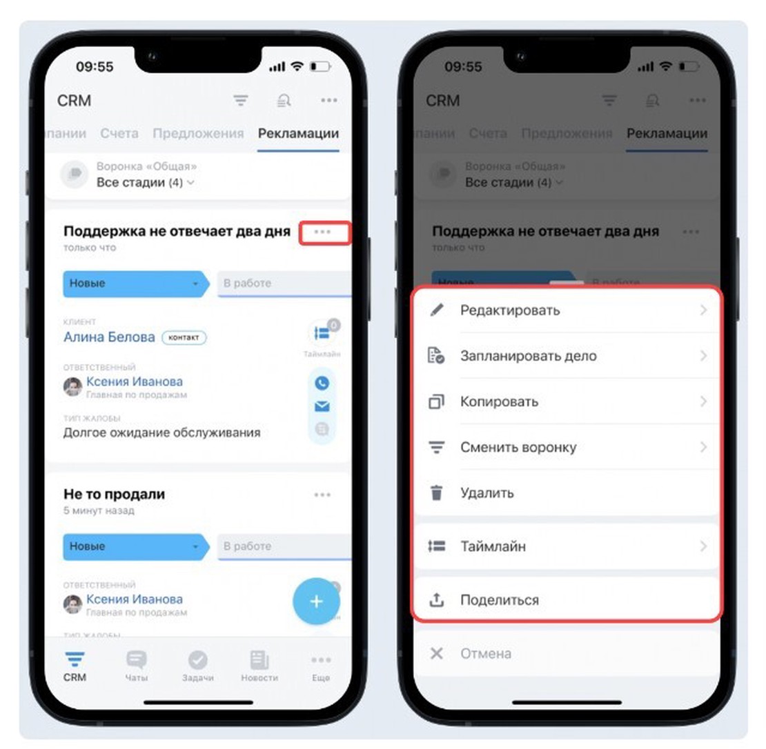 - отдельные воронки по сделкам,