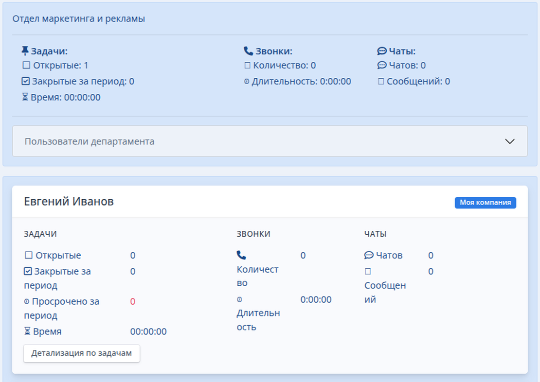Мониторинг эффективности команды в Битрикс24 (Часы, Задачи, Звонки, Чаты)